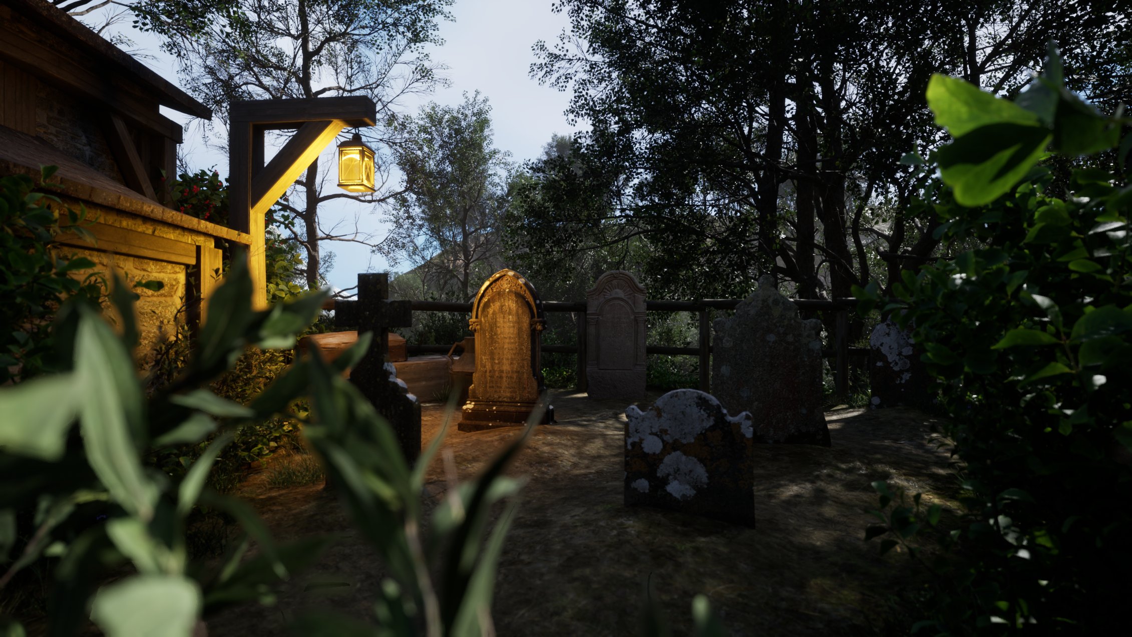 Modelled and textured house modules in a medieval fantasy style, assembled into a village environment in Unreal Engine.
